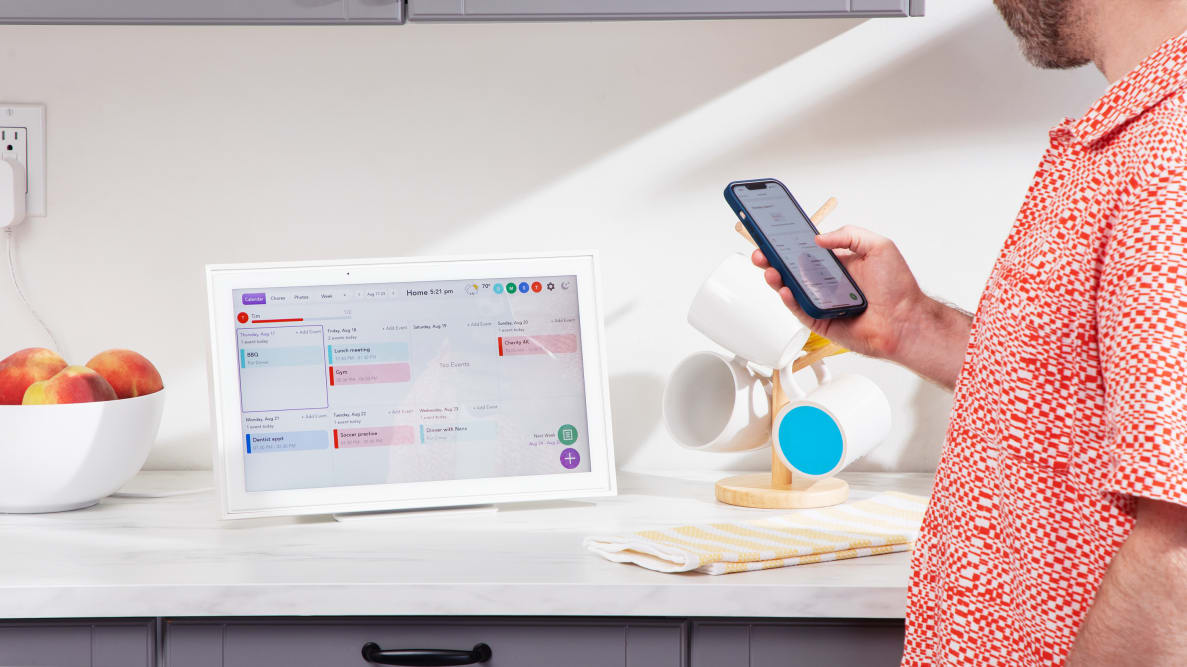 The Skylight Calendar is a Wi-Fi-enabled calendar that syncs with a user's smartphone and displays a day, week, or month-long schedule. It also has built-in grocery list functionality, and can be used as a digital photo frame as well.
