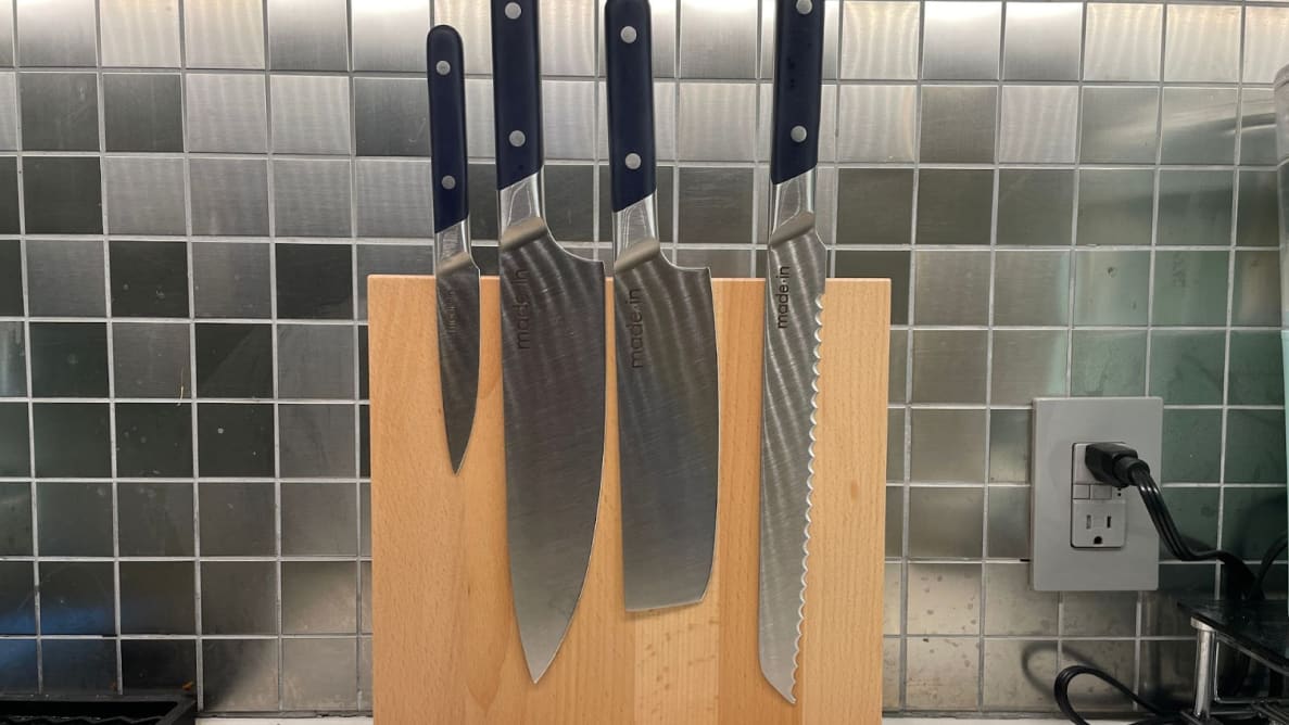 Overall, the Made In Knife Set with Magnetic Block is a suitable option for those who prefer a knife set bundled with a knife organizer. But if you're choosing purely based on knife utility and performance (and don't need any extras), opt for the even-more-lightweight Hedley & Bennett knife set.